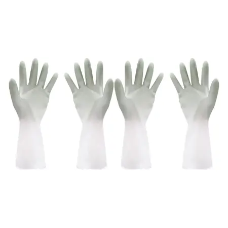 Premium Latex Household Gloves 2 Pair Reusable Waterproof Cleaning Gloves for Dishwashing, Laundry & Household Tasks Anti-Slip Grip & Elbow-Length Protection Description:- Clean with Confidence Stay Dry, Safe & Hygienic These Premium Latex Household Gloves offer superior hand protection for all your cleaning chores. Whether youre scrubbing dishes, doing laundry, or handling bathroom cleaning, these gloves shield your hands from harsh detergents and water. With textured anti-slip fingertips and an extended cuff, they deliver both safety and comfort in daily tasks. Key Features:- 2 Pair Set Comes with two reusable pairs ideal for rotating between kitchen and bathroom use. Waterproof Latex Material Keeps hands dry during washing and protects skin from detergent, bleach, or hot water. Anti-Slip Texture Grip Textured fingers ensure a strong hold on wet, slippery items like dishes and glassware. Elbow-Length Design Extended cuff length helps protect wrists and forearms from splashes and dirt. Soft & Comfortable Fit Flexible material for easy movement, plus a smooth inner lining for comfortable wear. Ideal For:- Dishwashing Kitchen cleaning Bathroom scrubbing Gardening tasks General household cleaning Dimension:- Volu. Weight (Gm) :- 269 Product Weight (Gm) :- 132 Ship Weight (Gm) :- 269 Length (Cm) :- 24 Breadth (Cm) :- 18 Height (Cm) :- 3